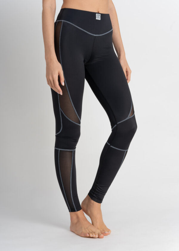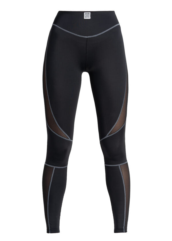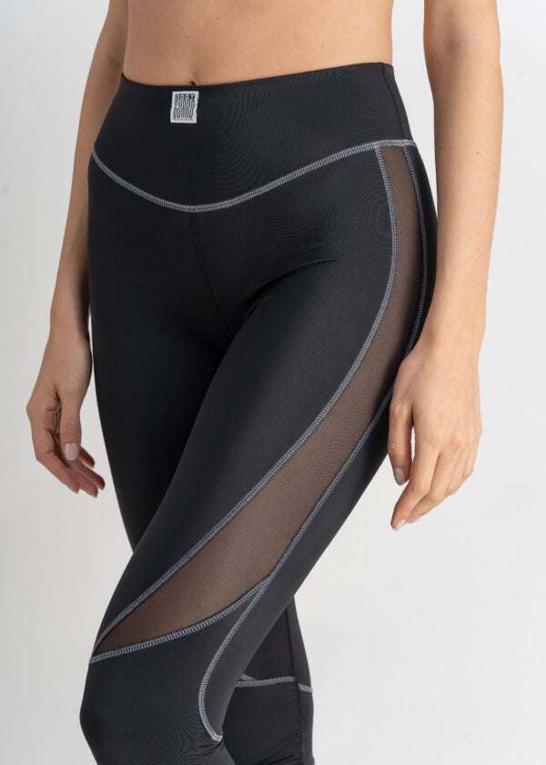 Hochtaillierte Sportleggings mit Netzeinsätzen und farblich abgestimmten oder kontrastrierenden Flatlocknähten